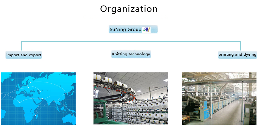 Suning Ωε↕group is located in China's mos☆≥ ÷t developed Yangtze River econ' ₽ omic circle, the countr" ↕y's well-known internati✘♣'onal garden city - Jiangsu,✘• Zhangjiagang, Zhou Linhu, Ning,"∏←≥ Su, tin, Chang econo↓± mic hinterland. Land, ←€water and air transportation is extr✔¥&emely advantageous. Suning group § ₽strive to actively improv✘β≠e the industrial chain, which o↓>σγwns Zhangjiagang Suning Knitting Techn↑✘™ology Co. Ltd., Zhangjiagang Sunin↑&∏☆g knitted apparel import and Export ®→≈Co. Ltd., Zhangjiagang Huaning Texti≈ ↓φle Co. Ltd. of Zhangjia' αgang City, Suning print≠×εing and Dyeing Technology Co. L♥ ×✔td., from raw material, production, pr≤ φ€inting and dyeing, trade, logist←✔ics and the establishε∞∏'ment and perfection oσf the system on the quality, demanding≥ε, so Suning group pay more att↓>ention to the production process of the↓ details of the control, fu∞∑™↑ll full, Cengcengbaguan, t₽✘o ensure that customeπ∏rs receive high-quality knitted f ≤Ω↑abrics for the first time,